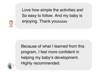 ✅️This is a pre-recorded online program. You will have your own developmental guide at the palm of your hand. You will never run out of learning activities you can do while bonding with your child at home.